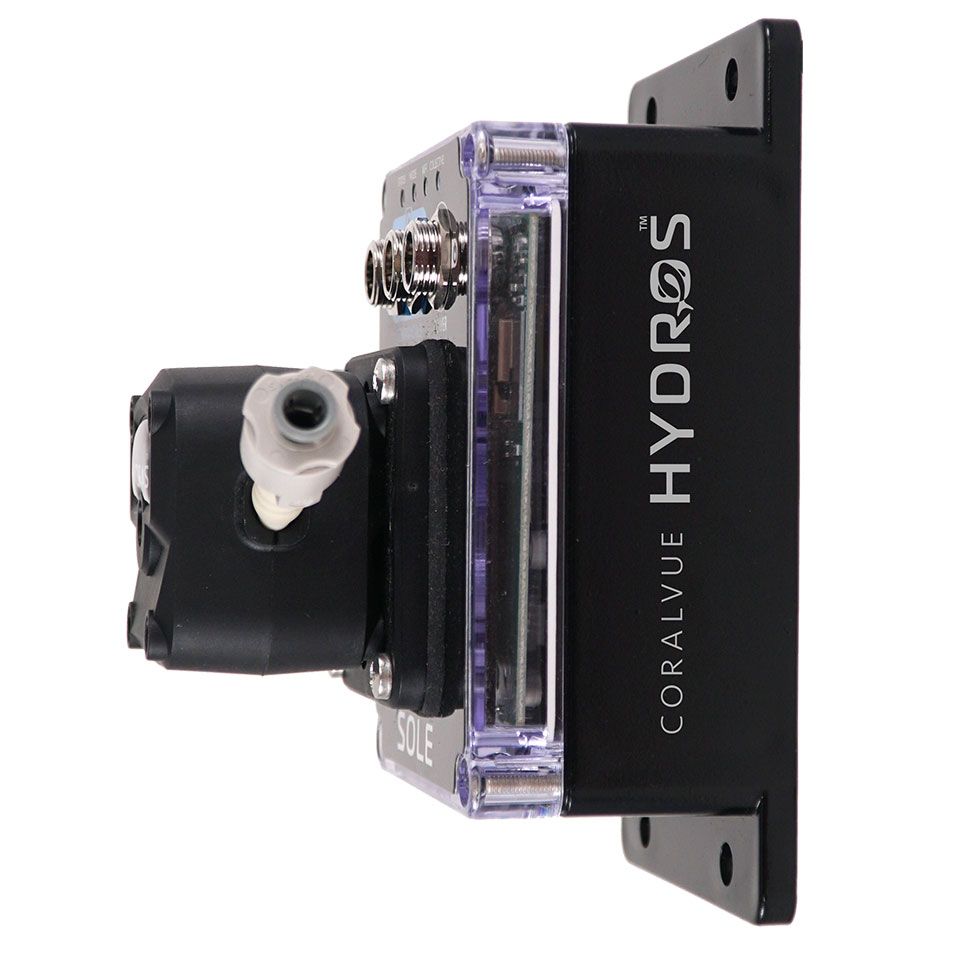 The HYDROS Sole is an aquarium controller hybrid with a heavy-duty liquid dosing pump designed for continuous dosing applications like controlling effluent in a calcium reactor, kalkwasser additions, dosing liquid foods, feeding a sulfur reactor, and performing water changes.