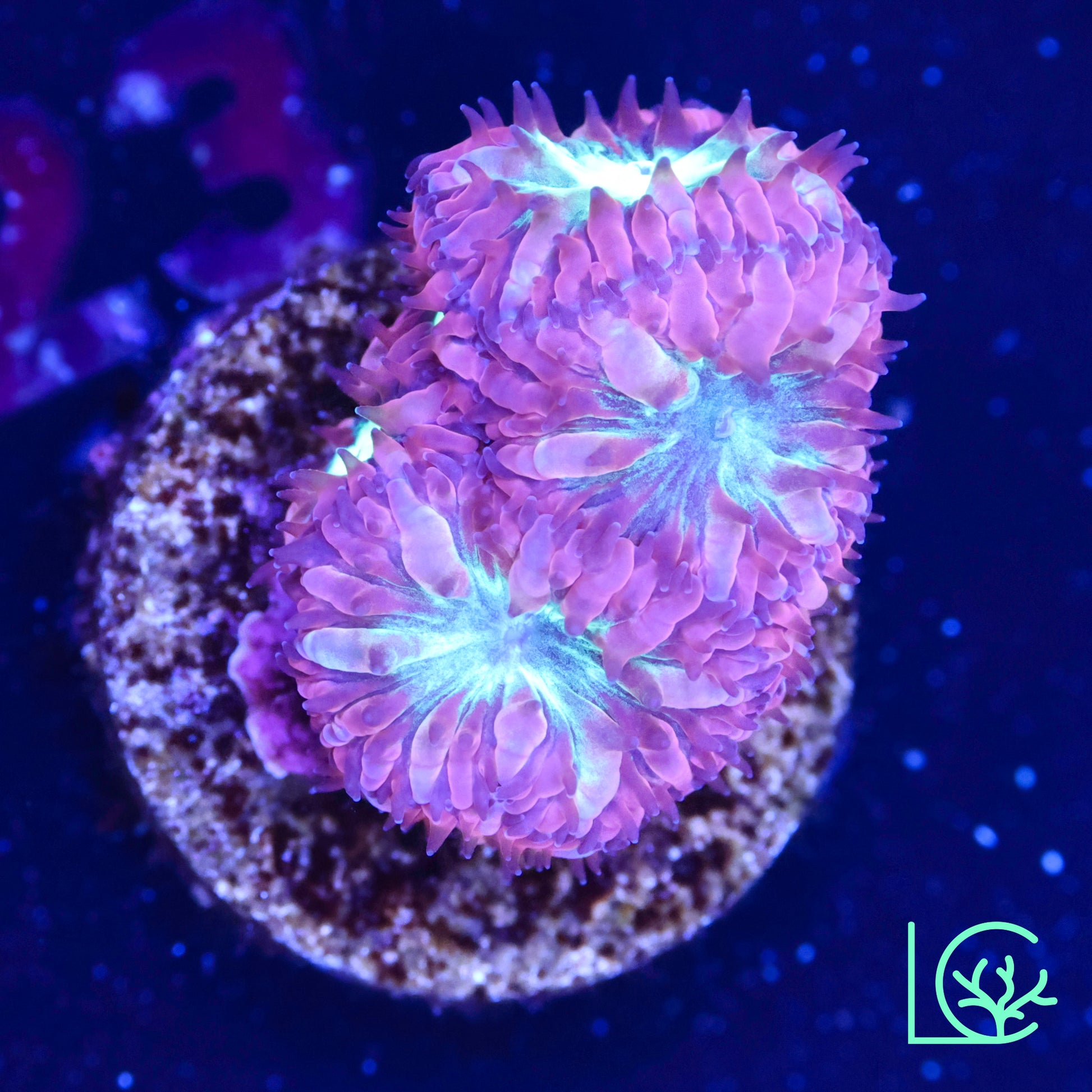A blue-dominant spectrum (420–470nm) enhances the coral's colors and promotes healthy growth.