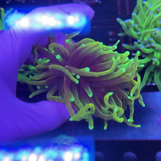 Euphyllia corals have been a staple in reef aquariums since the early days of the hobby. Torch corals, known for their long, flowing tentacles tipped with a ball, are a standout among them. This large polyp stony (LPS) coral is especially popular for the way it sways in the current, adding movement and color to any reef. It shares similar growth patterns and care needs with its Euphyllia relatives—the Hammer and Frogspawn corals.