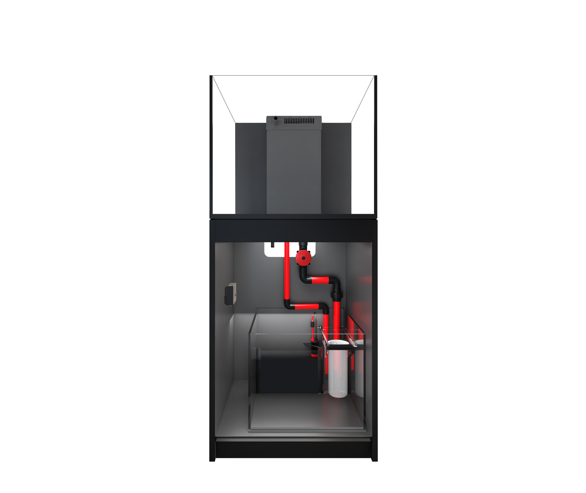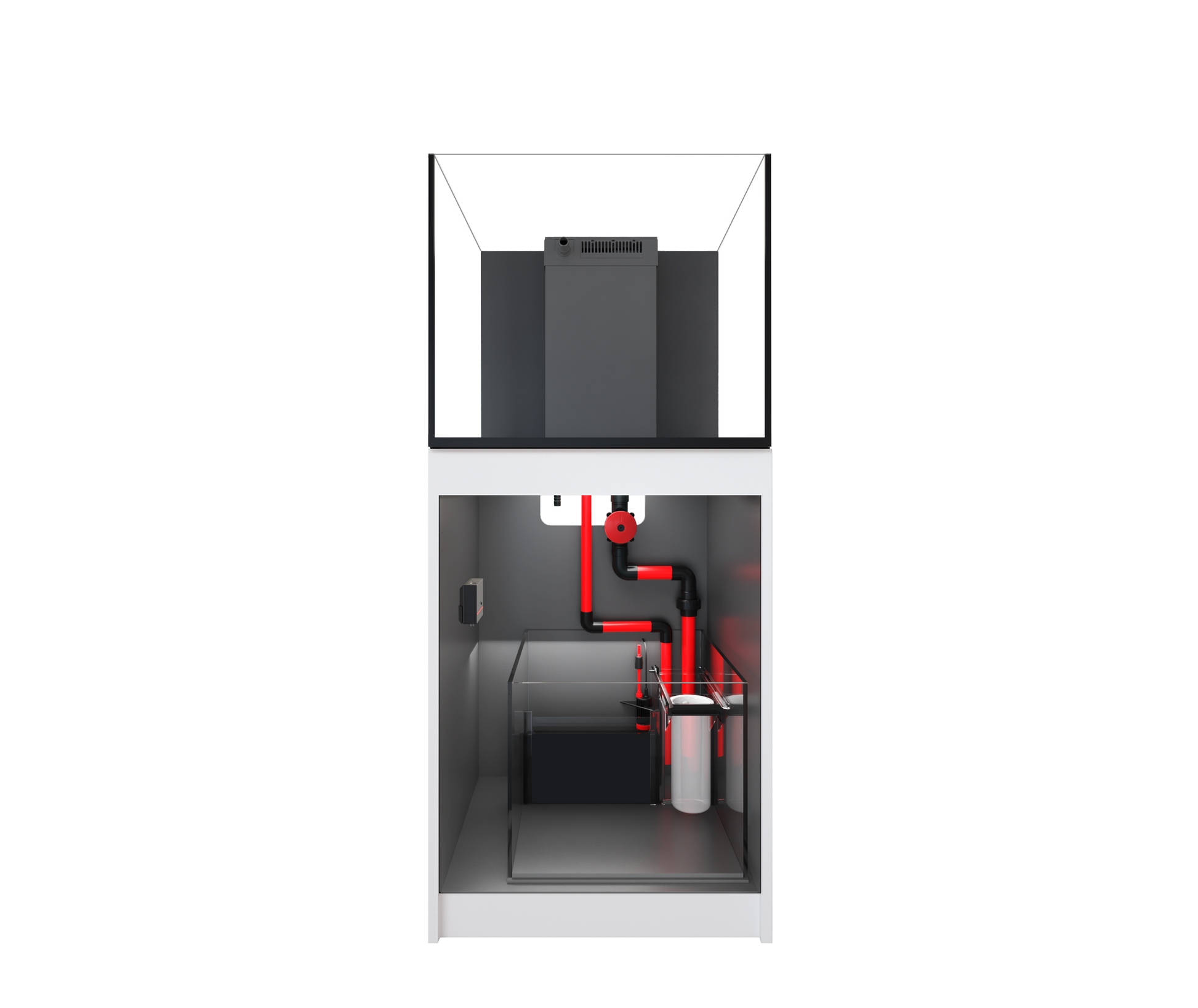 The included glass sump features a clean, straightforward layout that makes it easy to set up and maintain. Its flexible design is compatible with a wide range of filtration equipment, including Red Sea’s ReefMat fleece roller filters and REEFER DC protein skimmers, giving you plenty of upgrade options as your system grows (ReefMat and REEFER Protein Skimmer are sold separately).